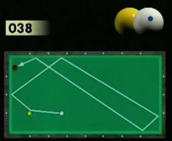 Hier werden die häufigsten Lösungsmuster im Dreiband aufgezeigt mit Stoßpunkt und Schnittpunkt mit Ball 2: