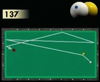 Hier werden die häufigsten Lösungsmuster im Dreiband aufgezeigt mit Stoßpunkt und Schnittpunkt mit Ball 2: