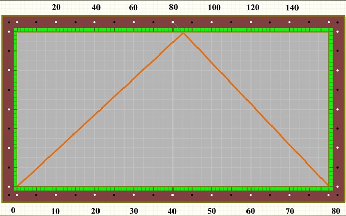Da jeder Billardtisch ein Seitenverhältnis von 2:1 hat bietet es sich an die Skalierung auf der Zielbande zu verdoppeln.