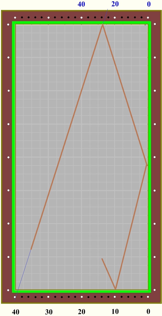 Der Startpunkt ist Bande A, der Zielpunkt Bande C der Ankunftspunkt Bande A