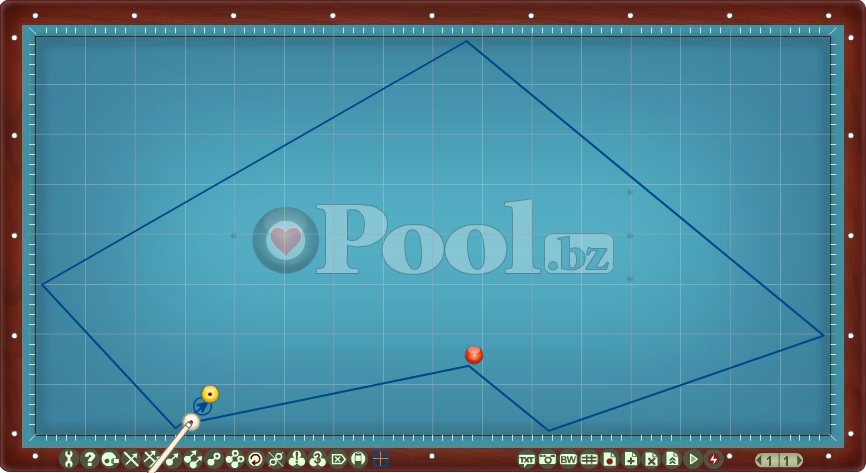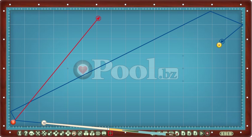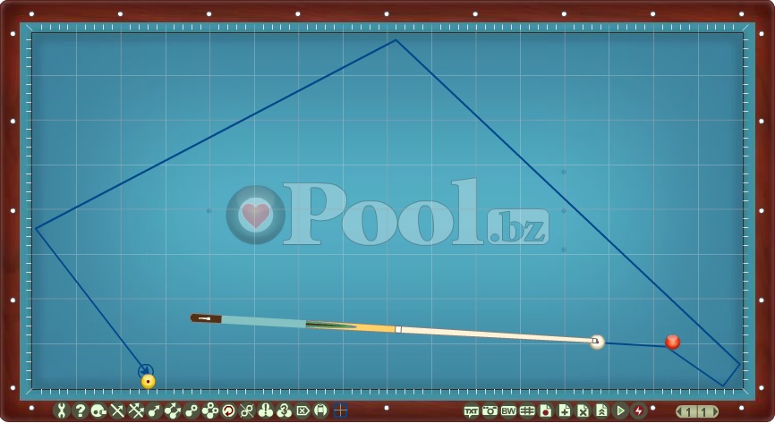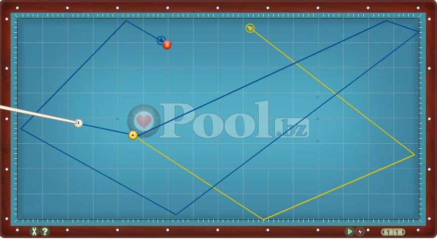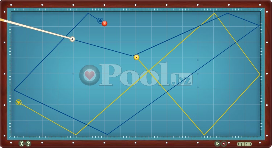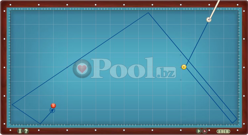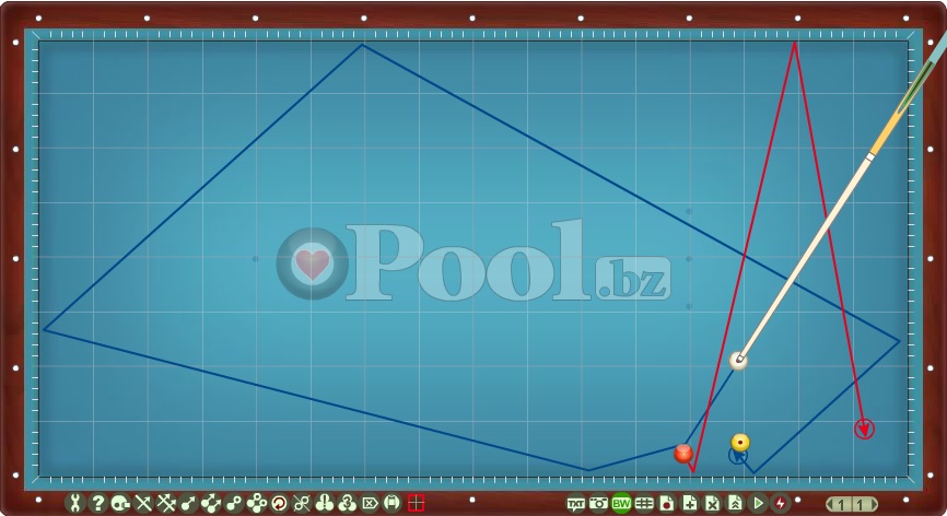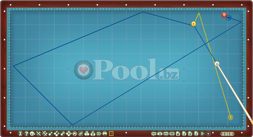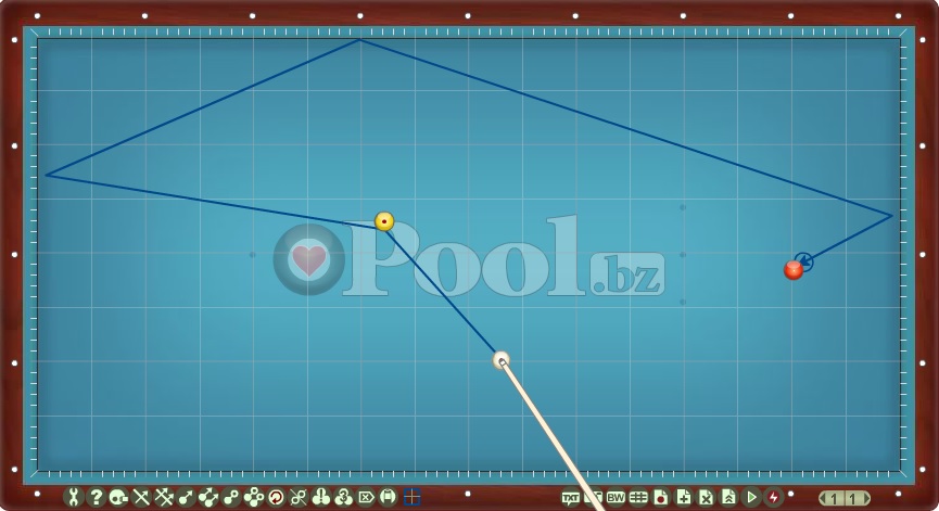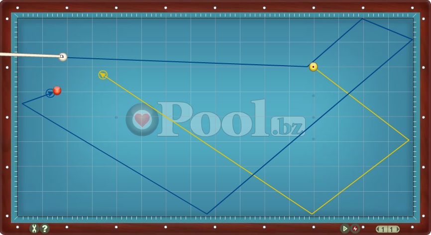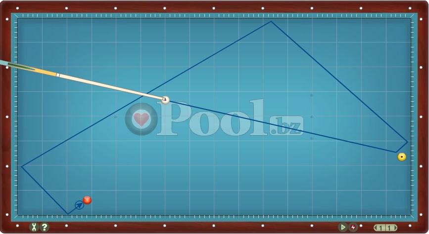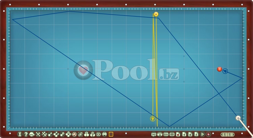 Hier werden Lösungsmuster im Dreiband aufgelistet bei denen Ball 1 direkt auf Ball 2 gespielt wird.