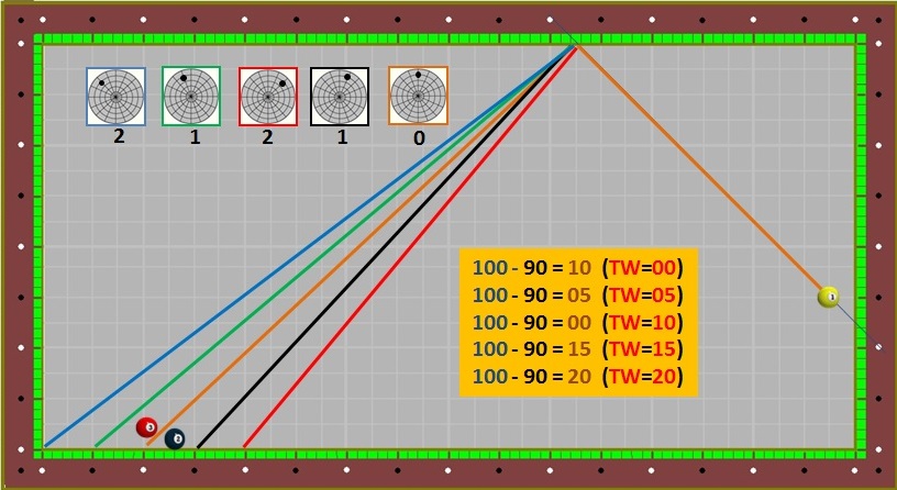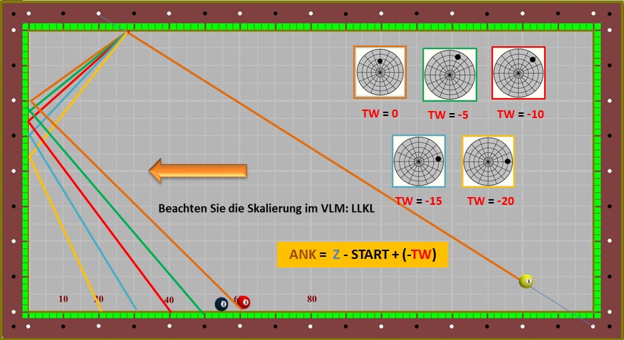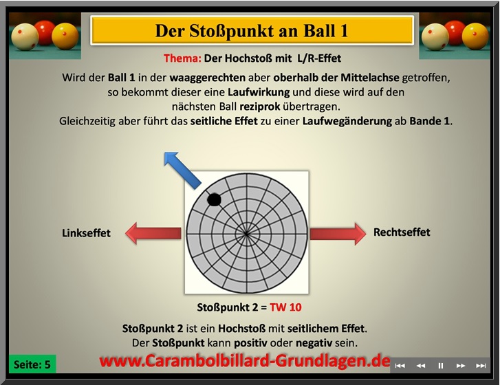 Des weiteren kann dies mit oder ohne aktives Effet auf Ball 1 geschehen.