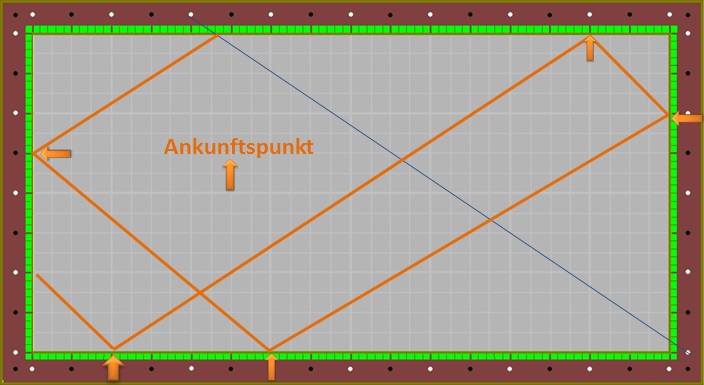 Ankunftspunkte liegen immer an der Bande vor dem Diamanten.