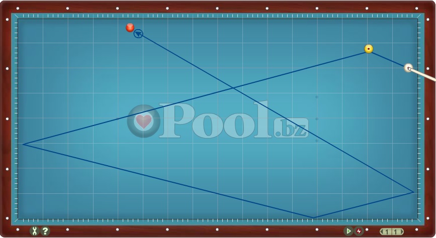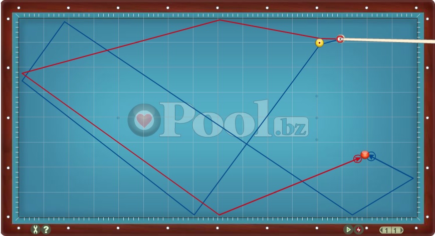 Weiterhin wird der Stosspunkt an Ball 1 und der Treffpunkt an Ball 2 aufgezeigt.