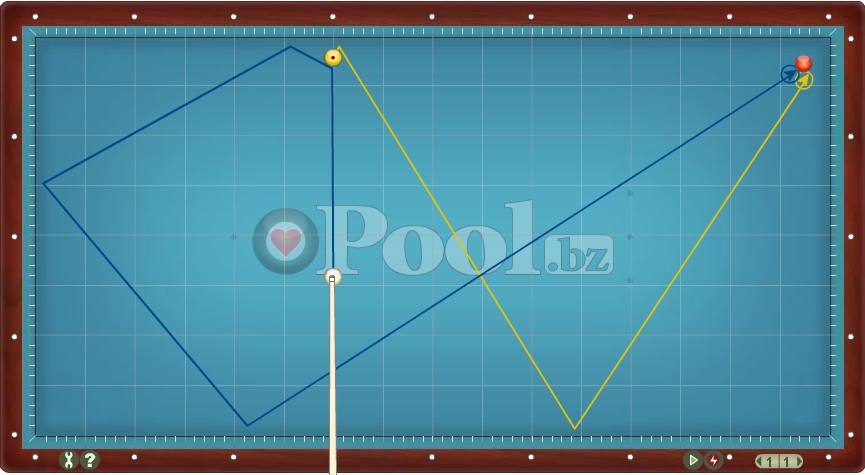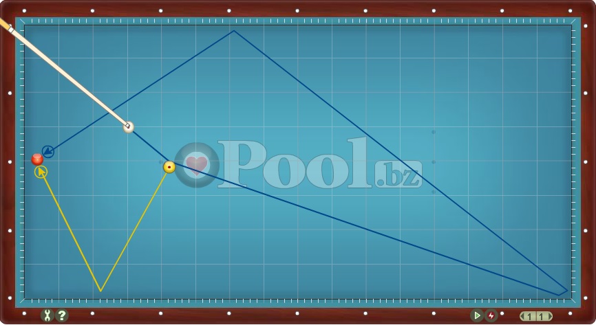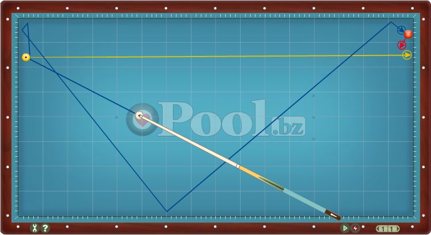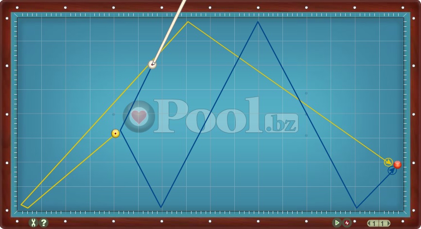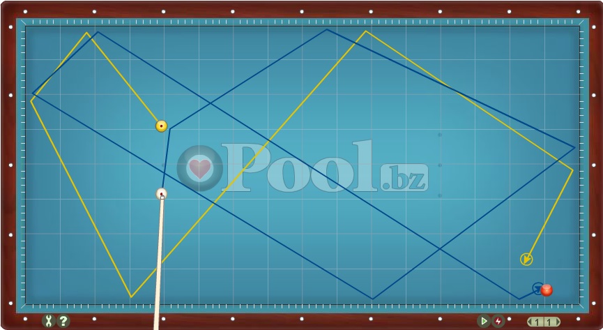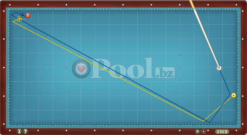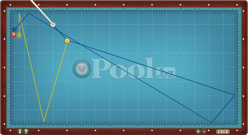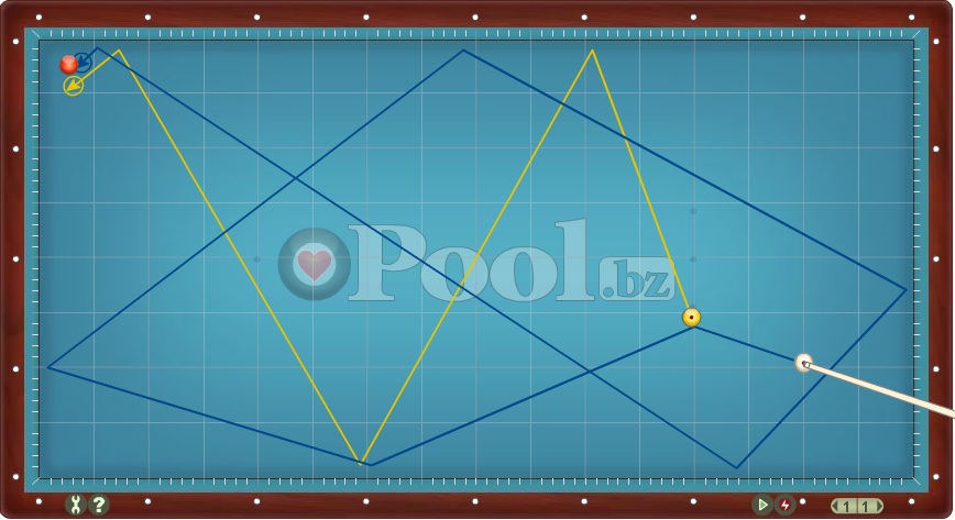 Wie muß ich Ball 2 anspielen damit er über mehrere Banden zu Ball 3 gelangt