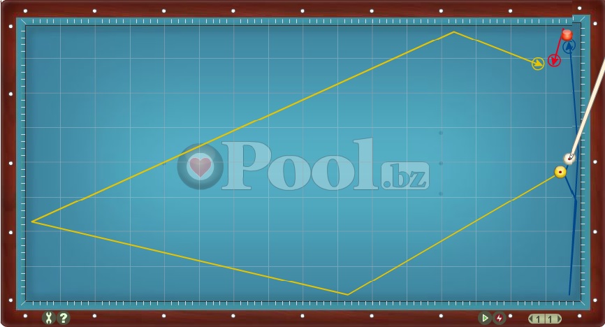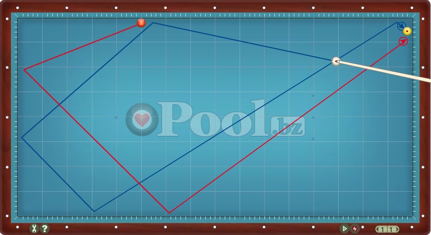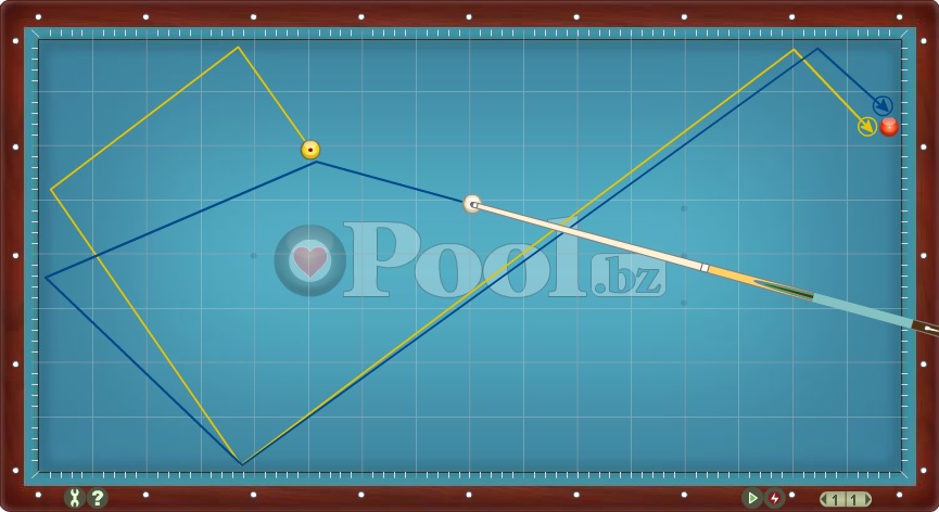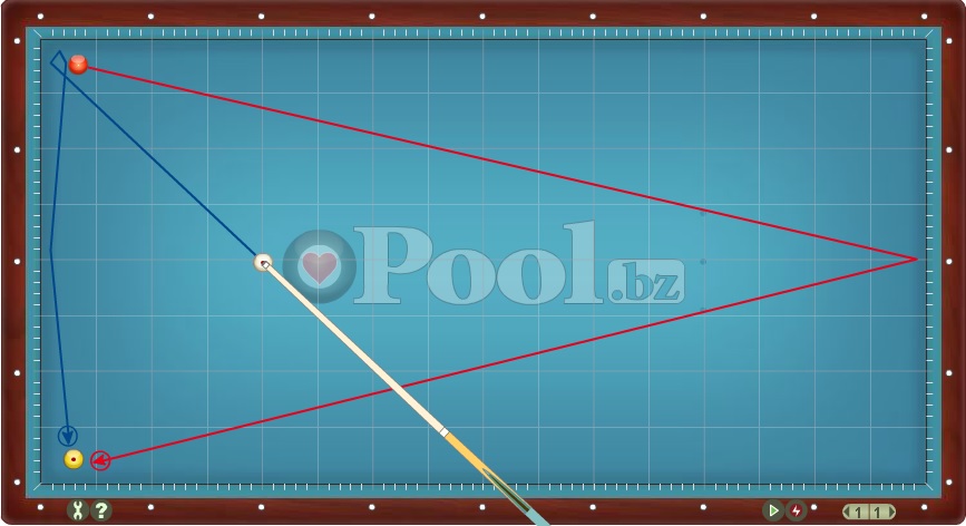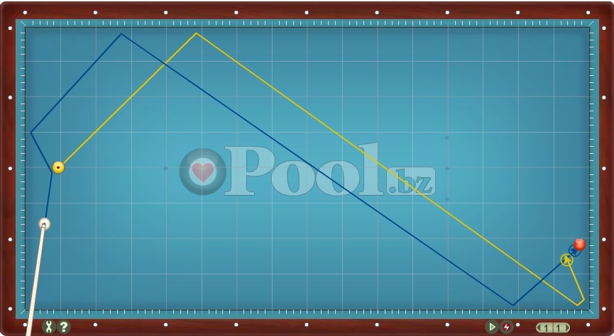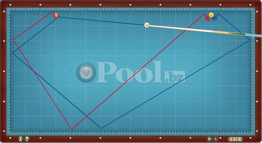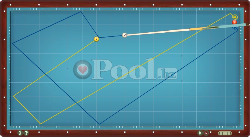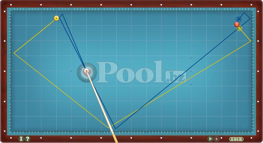 Wie muß ich Ball 2 anspielen damit er über mehrere Banden zu Ball 3 gelangt