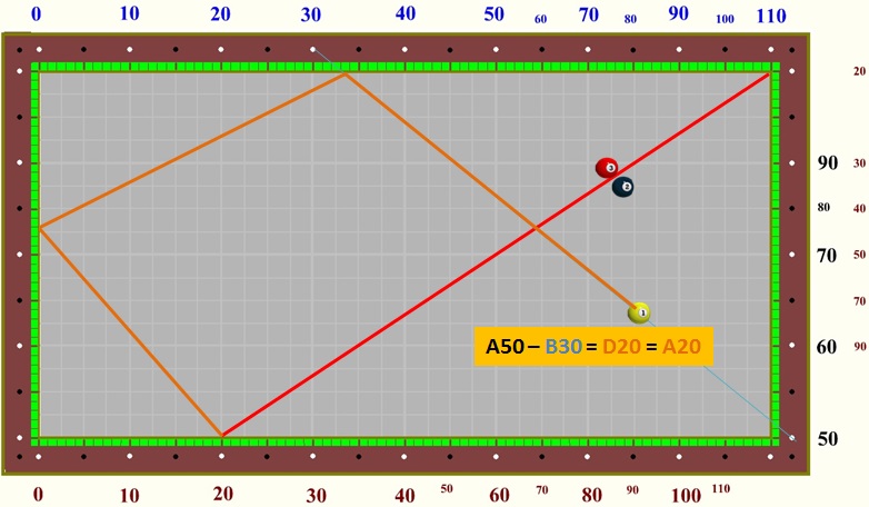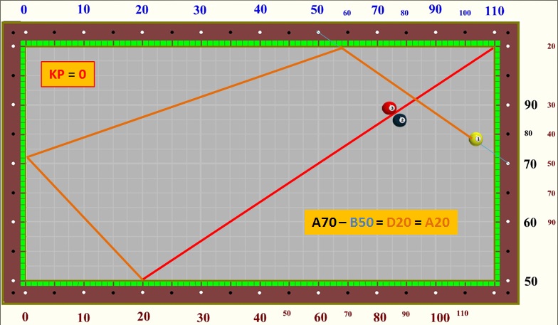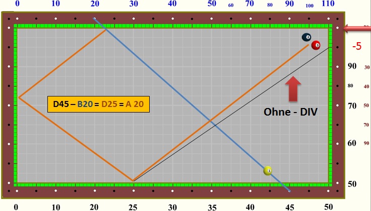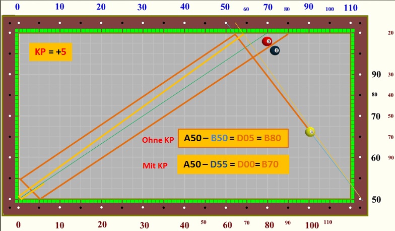im Dreibandspiel einsetzen, da es recht einfach zu berechnen ist.