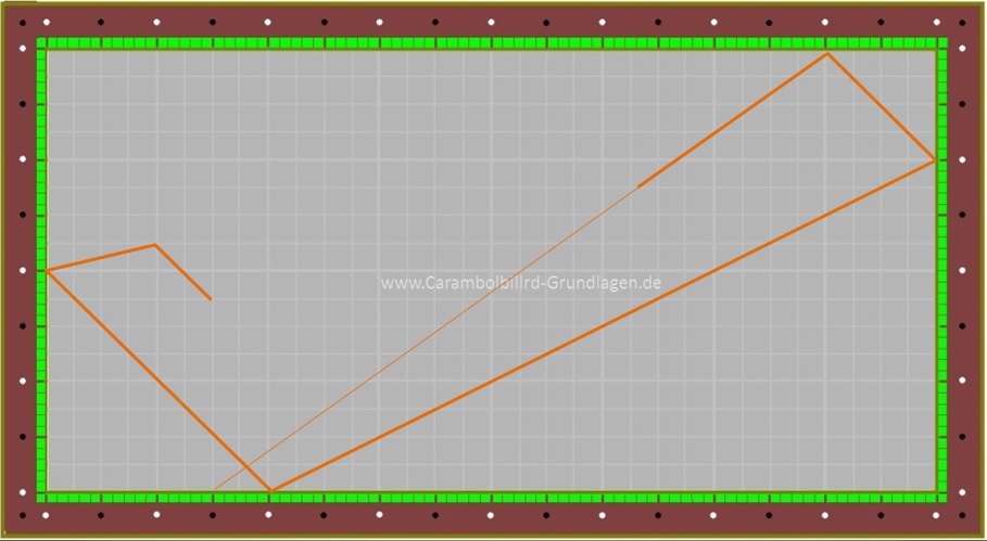 Ist der Abstand zur Ecke links 2 DIA und liegt Ball 3 auf dem Laufweg Bande 4 zu Bande 5 so ist