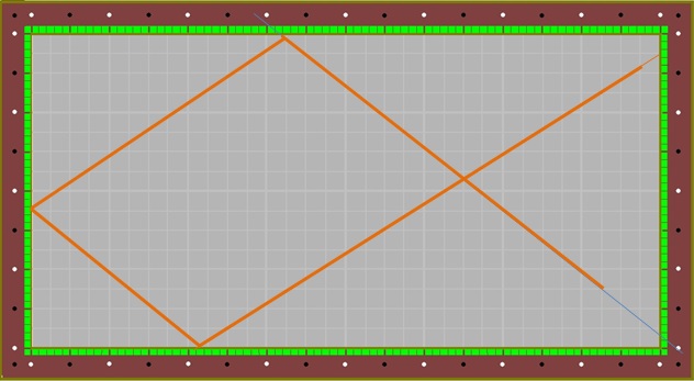 Das bedeutet wird Ball 1 mit dem Stoßpunkt 4 über das oben genannte VLM geschickt, dann sollte Ball 1 auf A20 ankommen.