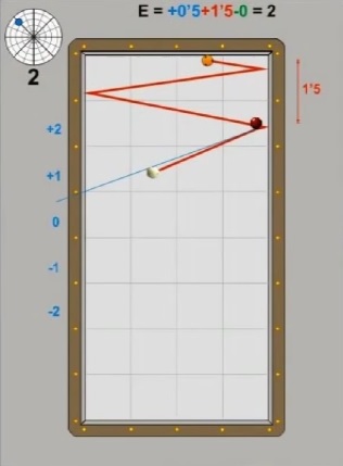 Durch die Winkelhalbierende pendelt Ball 1 mehrmals hin und her um dann nach Kontakt mit der 3. Bande Ball 3 zu tangieren.